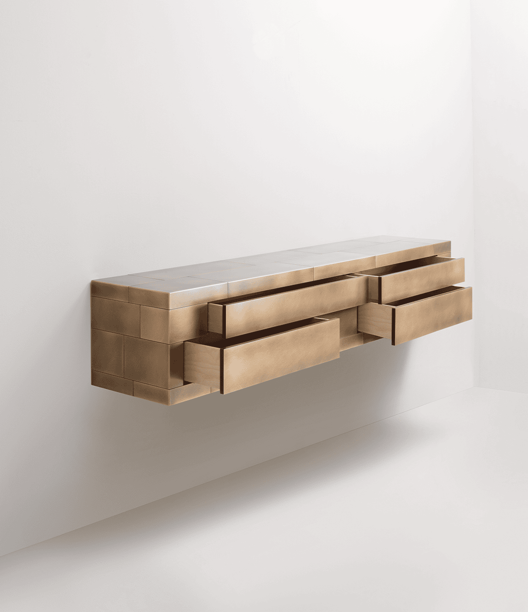 Монолитная форма придает консоли характер современного менгира. Внутри спрятаны многочисленные тайные пространства, создающие ощущение глубины и интриги. Celato объединяет отдельные элементы в единое целое, где эстетика, функциональность и мастерство ремесла De Castelli превращаются в уникальный объект дизайна, гармонично соединяющий традиции и современность.