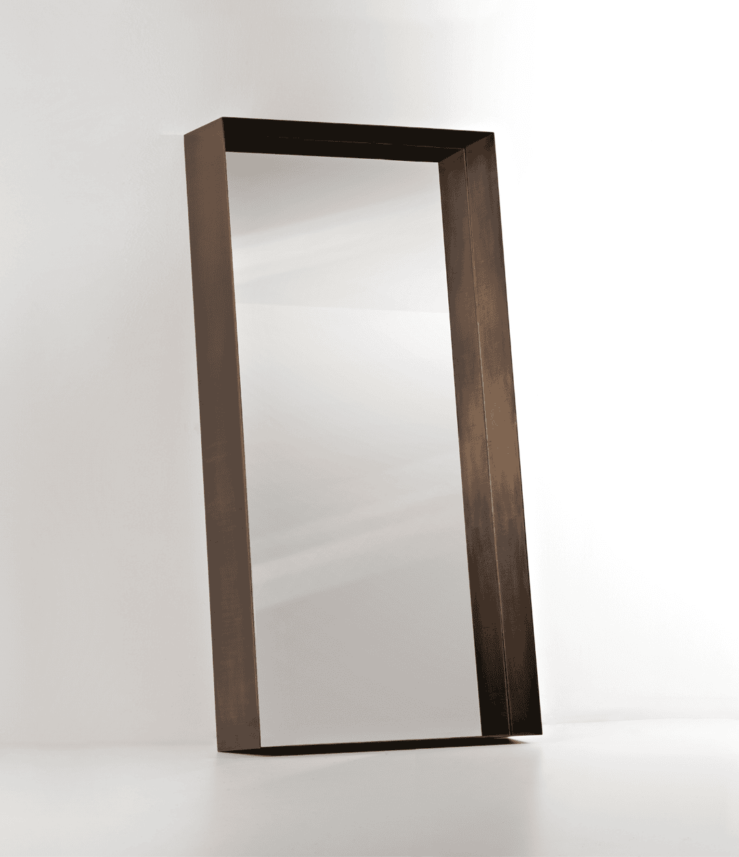 Frame от De Castelli — это напольное зеркало с глубоким металлическим ободом, создающее ощущение объема и плотности. Приближаясь к зеркалу, зритель получает возможность рассмотреть отражение детально, что превращает объект в провокационный элемент интерьера, побуждающий к самонаблюдению и внимательности.
