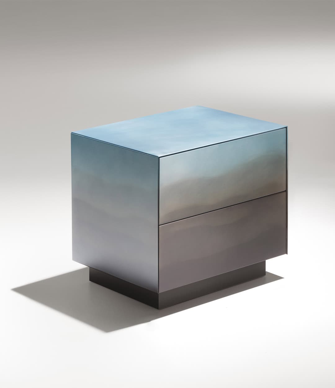 Версия тумбы Marea Bed с двумя выдвижными ящиками превращает обычный элемент спальни в настоящий акцент интерьера. Этот предмет мебели находится на стыке искусства и дизайна: полностью ручная отделка металла придает поверхности тонкую, почти акварельную текстуру.