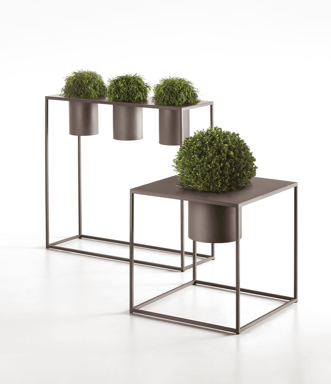 Минималистичный дизайн с тонкими, почти невесомыми линиями подчеркивает фактуру и сенсорную природу металлических поверхностей. Riviera Pots одинаково органично смотрятся как в интерьере, так и на открытом воздухе, создавая гармонию между архитектурой, природой и искусством работы с металлом.