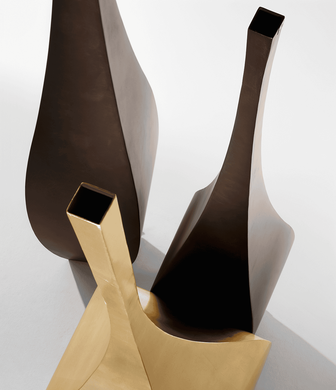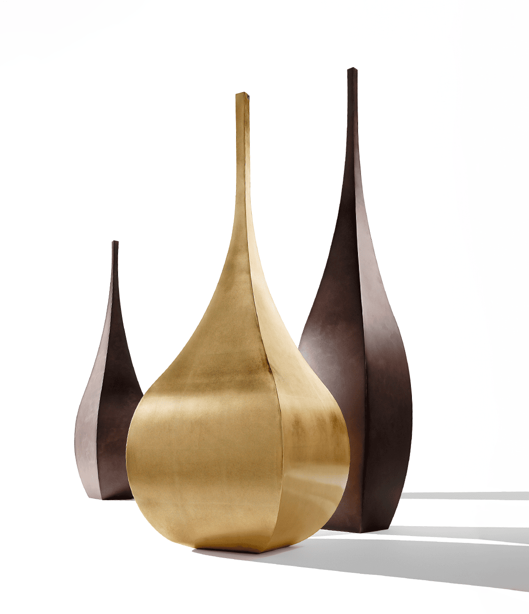 Вазы доступны в нескольких вариантах отделки: классический COR-TEN с его естественной фактурой, элегантная патина нержавеющей стали, а также эффектная позолота, которая придает изделиям величественный характер. В таком исполнении Shimla & Jaipur напоминают драгоценные сосуды, достойные дворца махараджи, и подчеркивают умение De Castelli работать с металлом как с живым материалом, способным сочетать функциональность и художественную ценность.