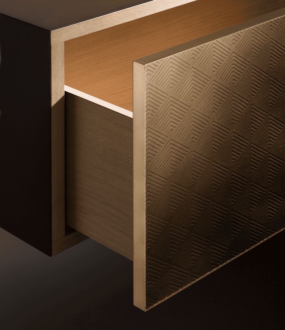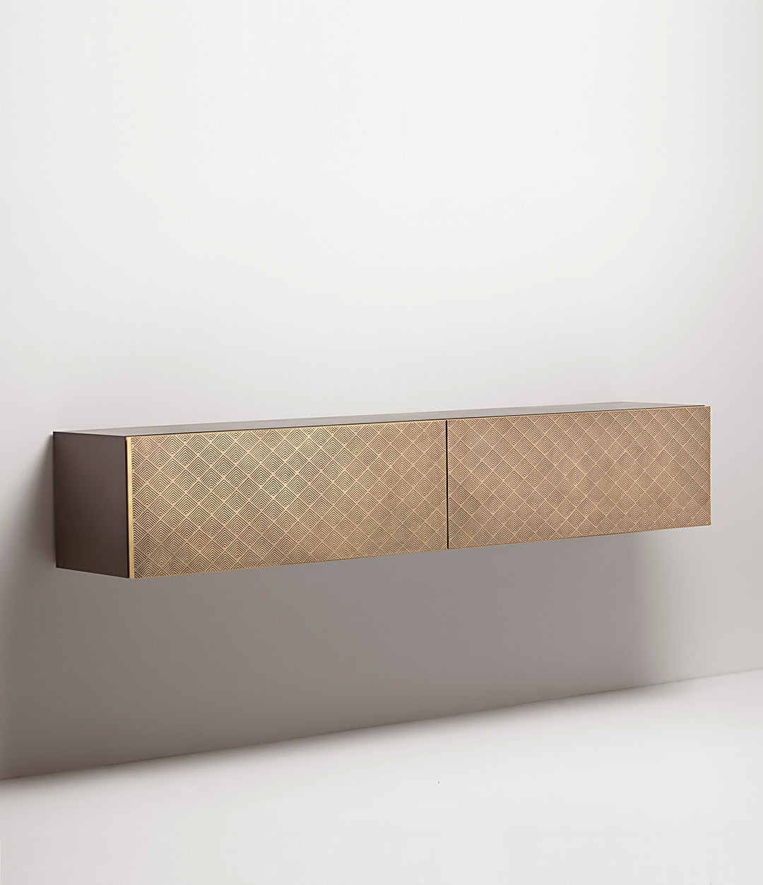 Tako от De Castelli — это консоль с чистыми объёмами и лаконичным дизайном, подчёркивающим благородство металла, которым облицованы крупные поверхности ящиков. Доступна в настенном и отдельно стоящем варианте.