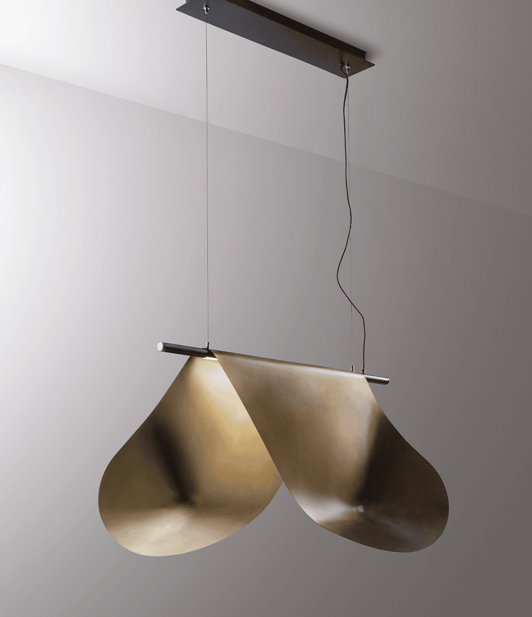 Сочетание отделок и техник — чередование сатинированных и окисленных поверхностей — формирует неповторимые световые эффекты, которые различаются в каждой модели. Twist Ceiling объединяет мастерство работы с металлом и художественный замысел, превращая светильник в изысканный элемент интерьера.